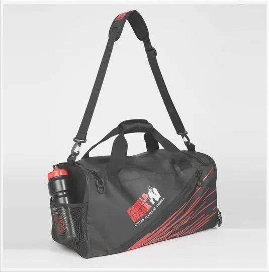 Тренировочная сумка из высокопрочного материала с двойными ручками для переноски и съемным регулируемым ремнем через плечо. Уплотненное дно, одно большое отделение на молнии, а также боковые карманы и отделение для обуви.